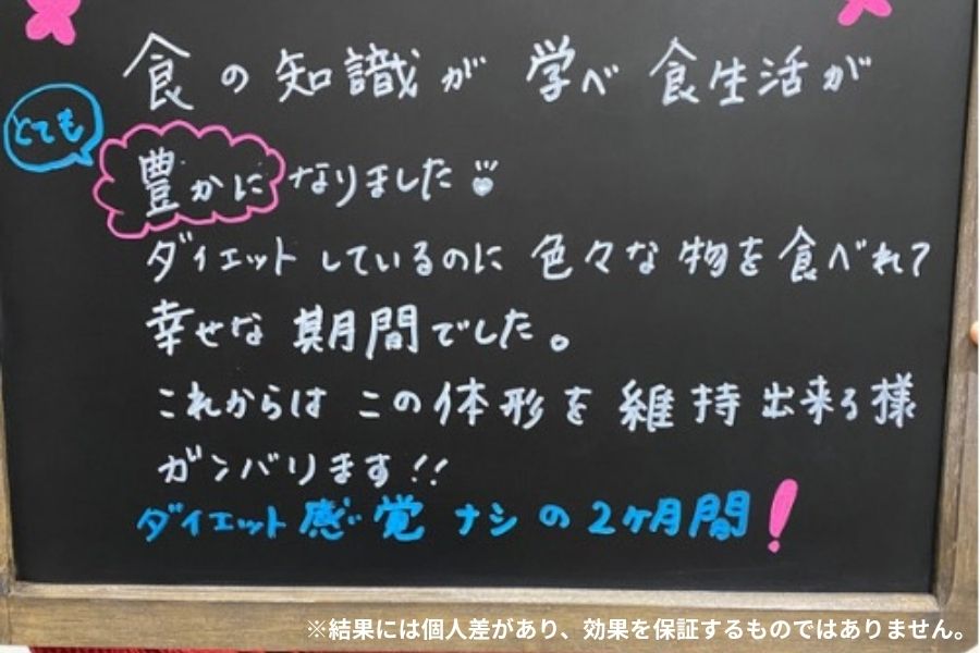 辛さを感じずに成果を出せたことは、これから先の生活でも続けられる大きな自信につながると思います。