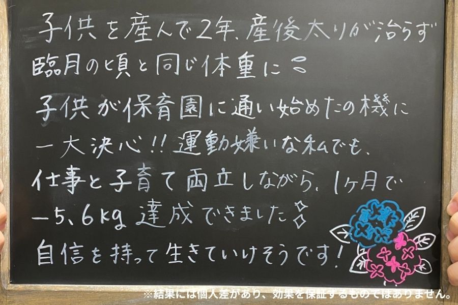 運動嫌いの私でも、仕事と子育てを両立しながら数ヶ月で-5.6kgを達成できました。