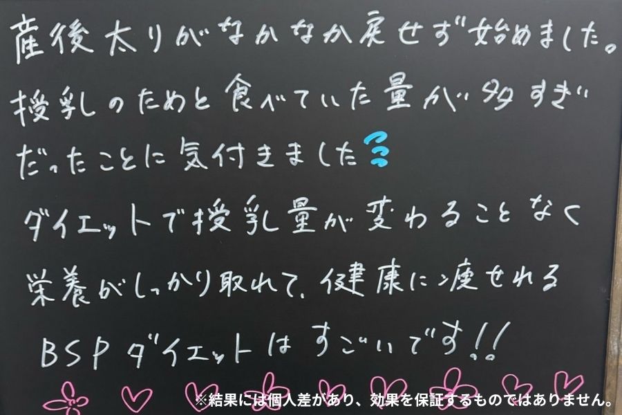 ダイエットをしても授乳量が減ることなく、栄養をしっかり摂りながら健康的に痩せられました。