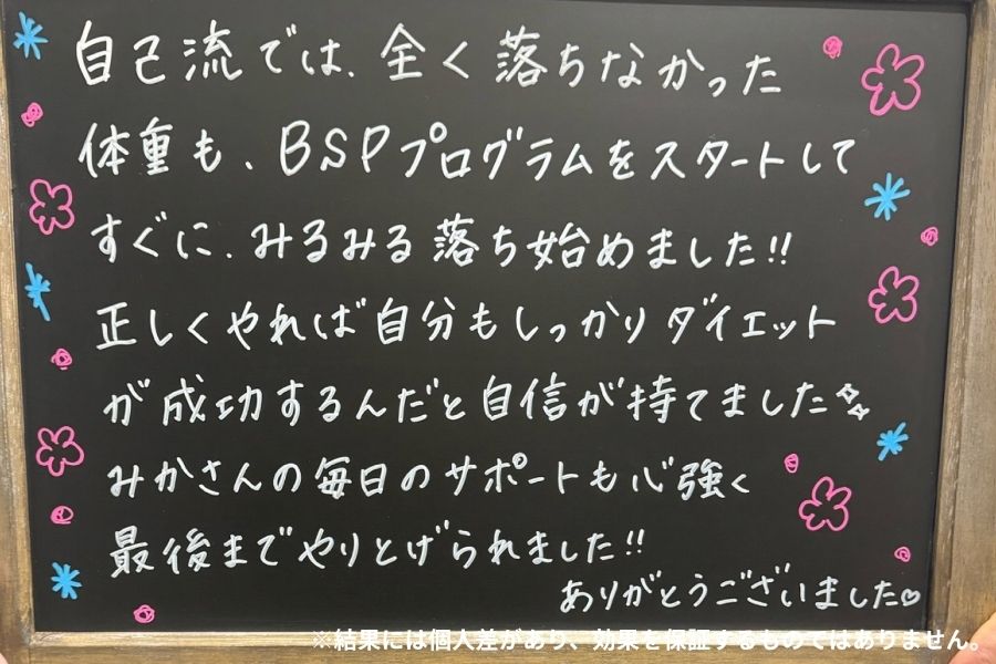 自己流では全く落ちなかった体重も、ダイエットプログラムをスタートしてすぐにみるみる落ち始めました。